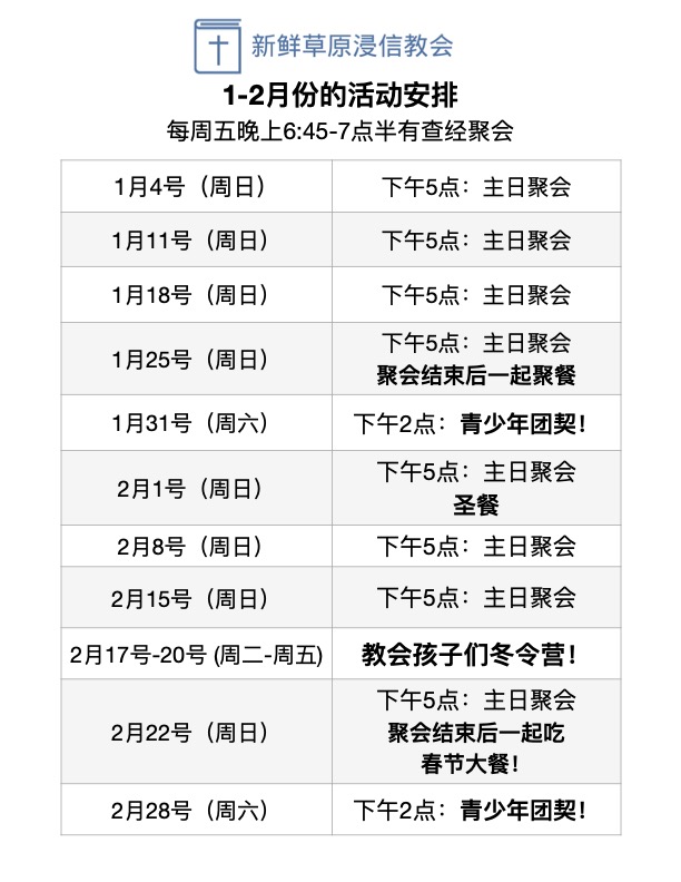 周五晚上查经 = 6:45-7点半