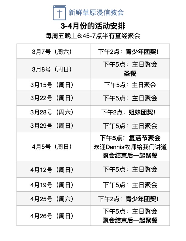 石牧师出生在美国的乔治亚州,他十八岁的时候相信了耶稣来拯救他。相信耶稣之后他心里为了传福音的事工开始感觉有很大的义务,开始做一些传福音的事工。后来他感觉神呼召他来做全职的传道人,就开始读神学院。神学院毕业后,他和石佳慧结婚了。他们两个人去了中国待了差不多两年。在中国一边学习中文,一边传福音。2020年他们回到了美国。2021年12月份他们在法拉盛开始真理浸信教会。两年之后神给他们机会在新鲜草原开始新鲜草原浸信教会。2023年10月8号新鲜草原教会教会的第一次聚会。感谢神。石牧师欢迎你来探访新鲜草原浸信教会。他希望很多人可以有机会了解神的话语。
