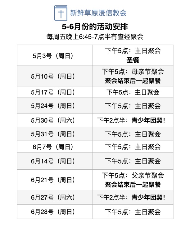 周五晚上查经 = 6:45-7点半